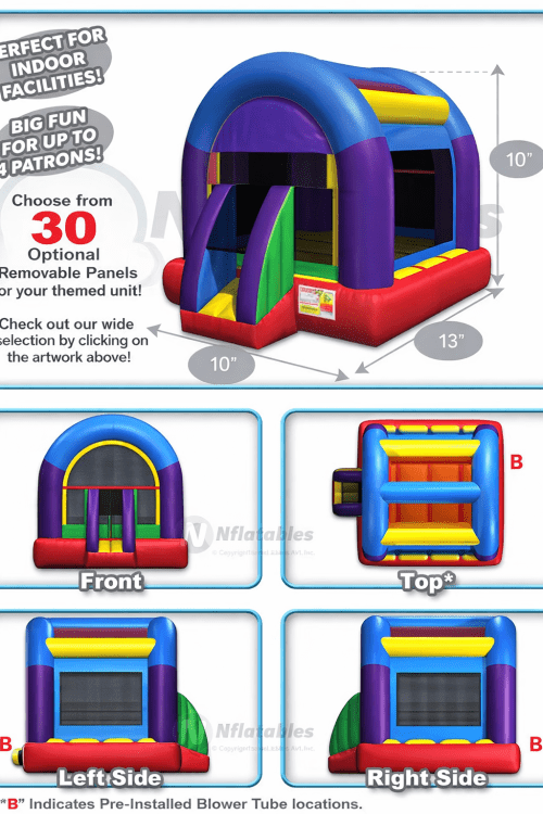 - OCCUPANCY: A maximum of 5-6 kids of equal size at one time for bounce houses, and 1 person at a time for slides is what most inflatable manufacturers recommend.