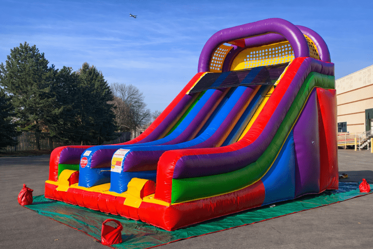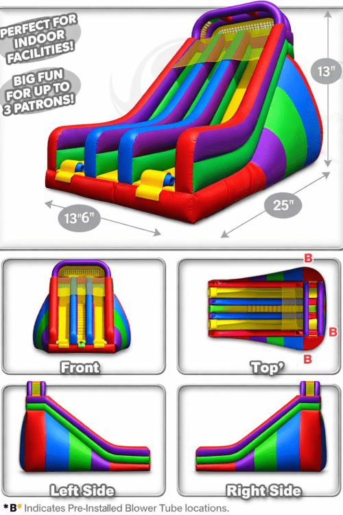 - OCCUPANCY: A maximum of 5-6 kids of equal size at one time for bounce houses, and 1 person at a time for slides is what most inflatable manufacturers recommend.