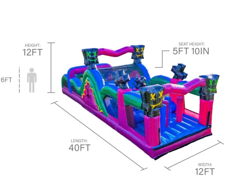 - OCCUPANCY: A maximum of 5-6 kids of equal size at one time for bounce houses, and 1 person at a time for slides is what most inflatable manufacturers recommend.