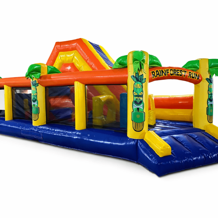 - OCCUPANCY: A maximum of 5-6 kids of equal size at one time for bounce houses, and 1 person at a time for slides is what most inflatable manufacturers recommend.