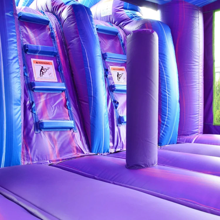- OCCUPANCY: A maximum of 5-6 kids of equal size at one time for bounce houses, and 1 person at a time for slides is what most inflatable manufacturers recommend.
